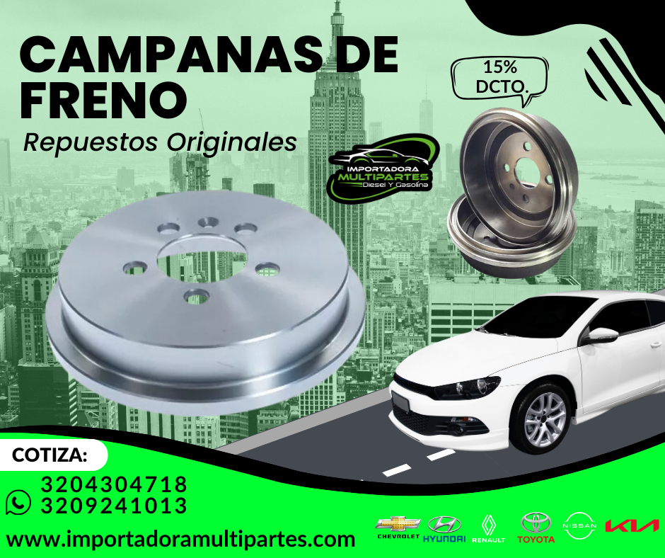 Fabricadas con materiales resistentes al calor y a la fricción, estas campanas ofrecen larga vida útil y un rendimiento constante, incluso en condiciones de manejo exigentes. Son ideales para vehículos con frenos traseros tipo tambor y están disponibles para múltiples marcas y modelos.